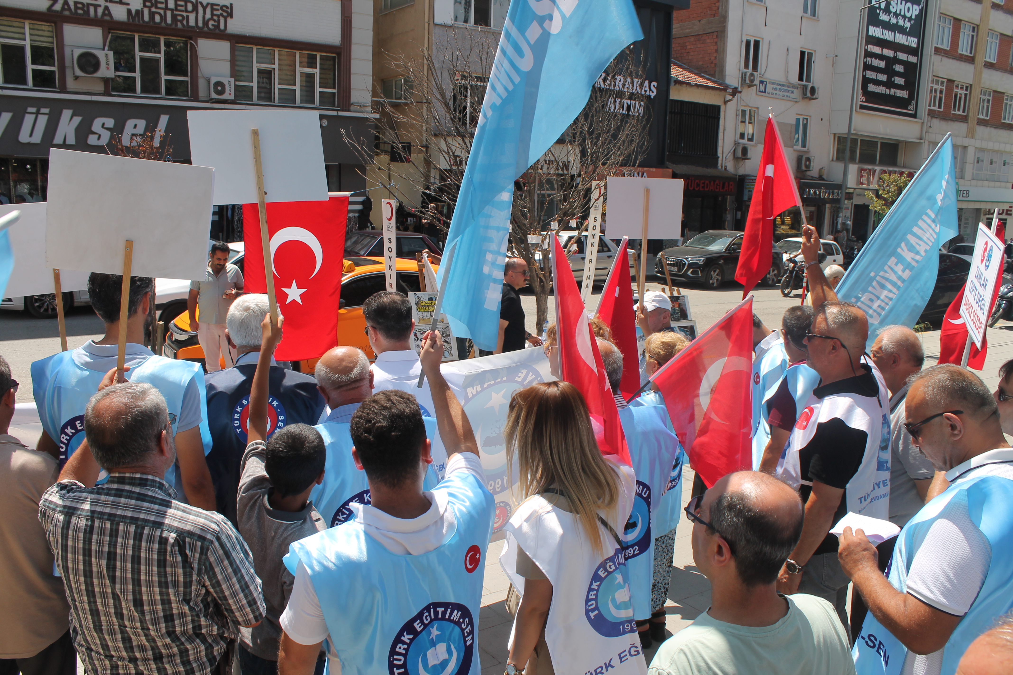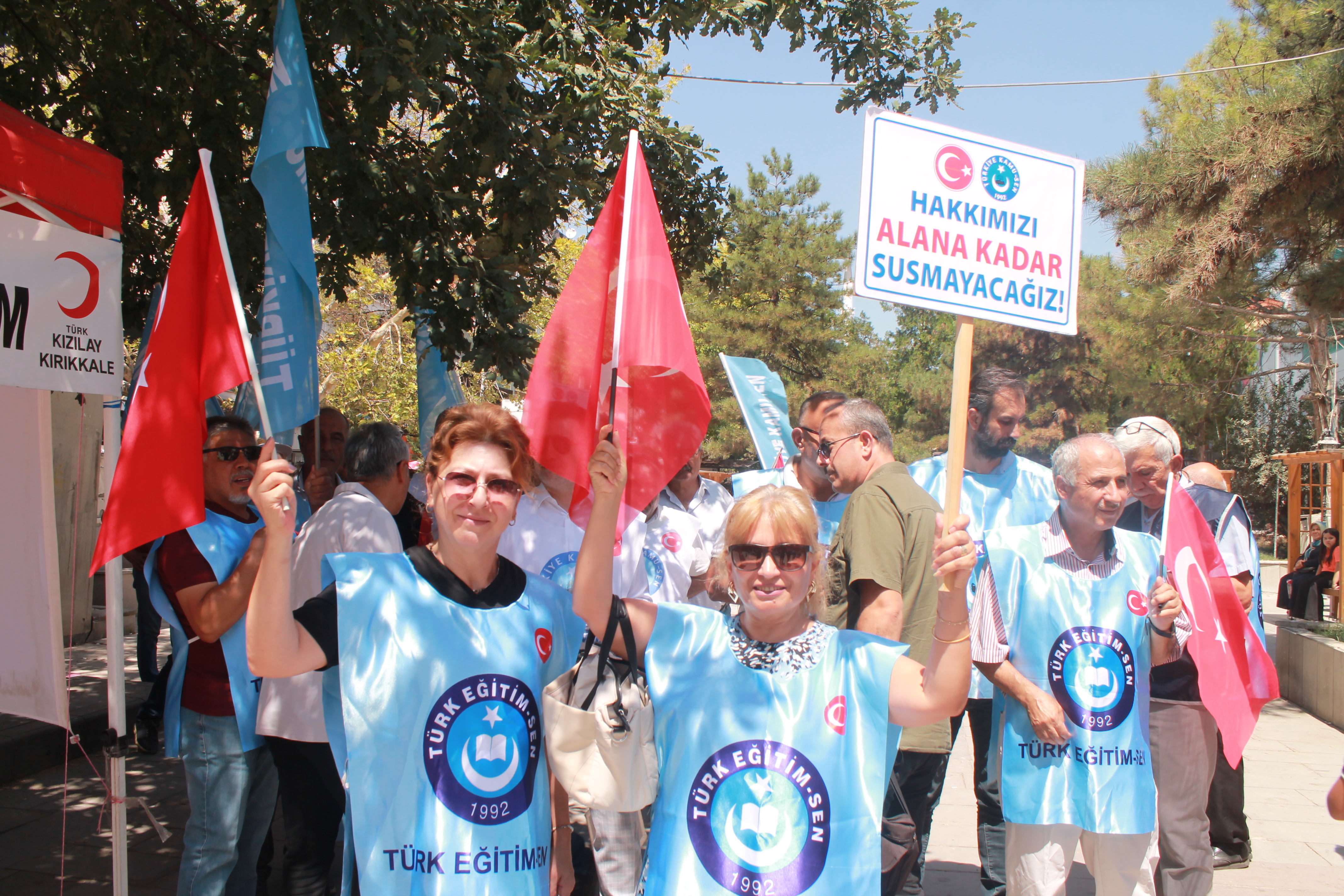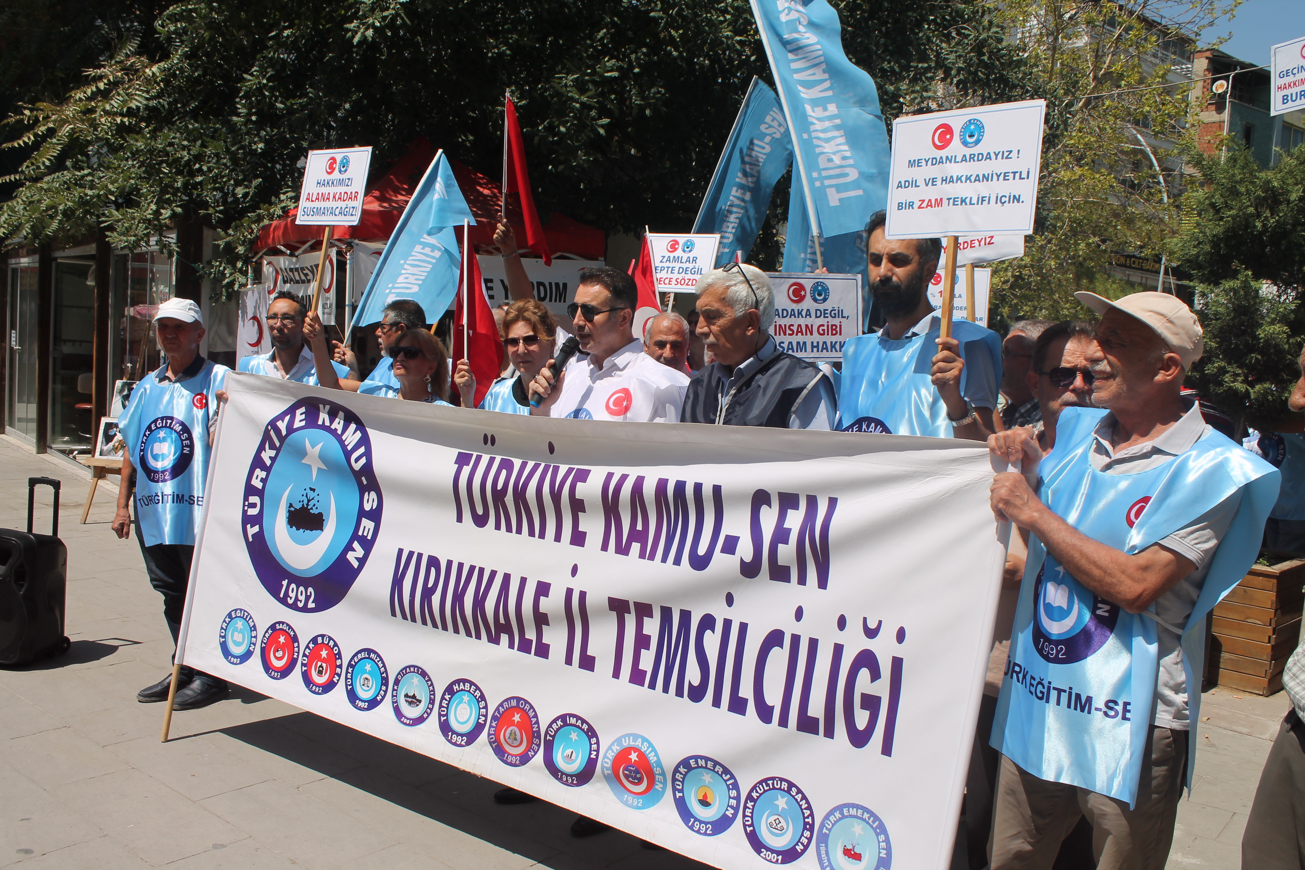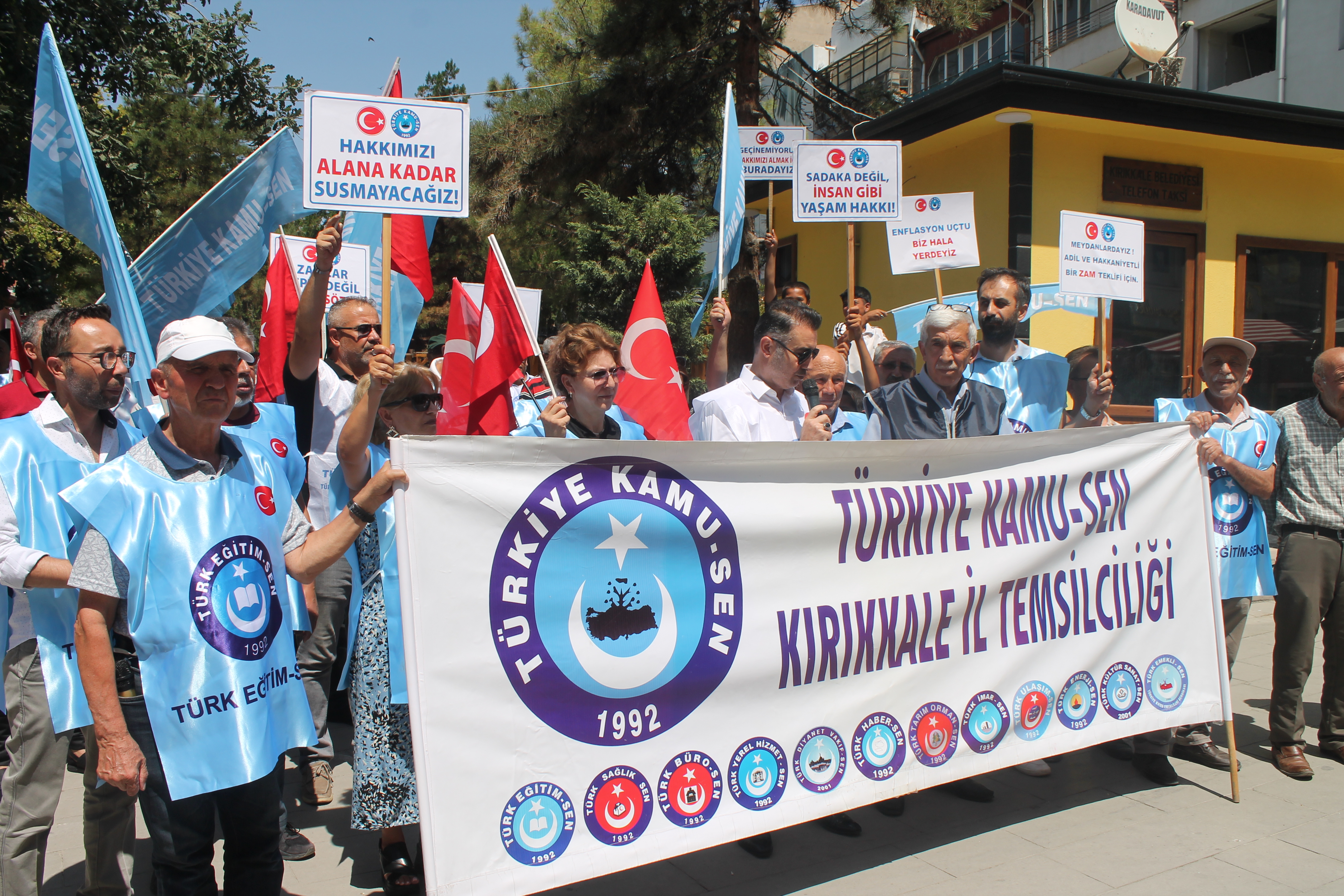 Türkiye Kamu-Sen Kırıkkale İl Başkanı ve Türk Eğitim-Sen Kırıkkale Şube Başkanı Yücel Karabacak, yönetimi ve üyeleri, kamu çalışanları ve emeklilerin maaş artışı taleplerine dikkat çekmek amacıyla meydanlara indiler. Meydana inen kamu çalışanları ve emekliler adalet istediklerini söylediler.