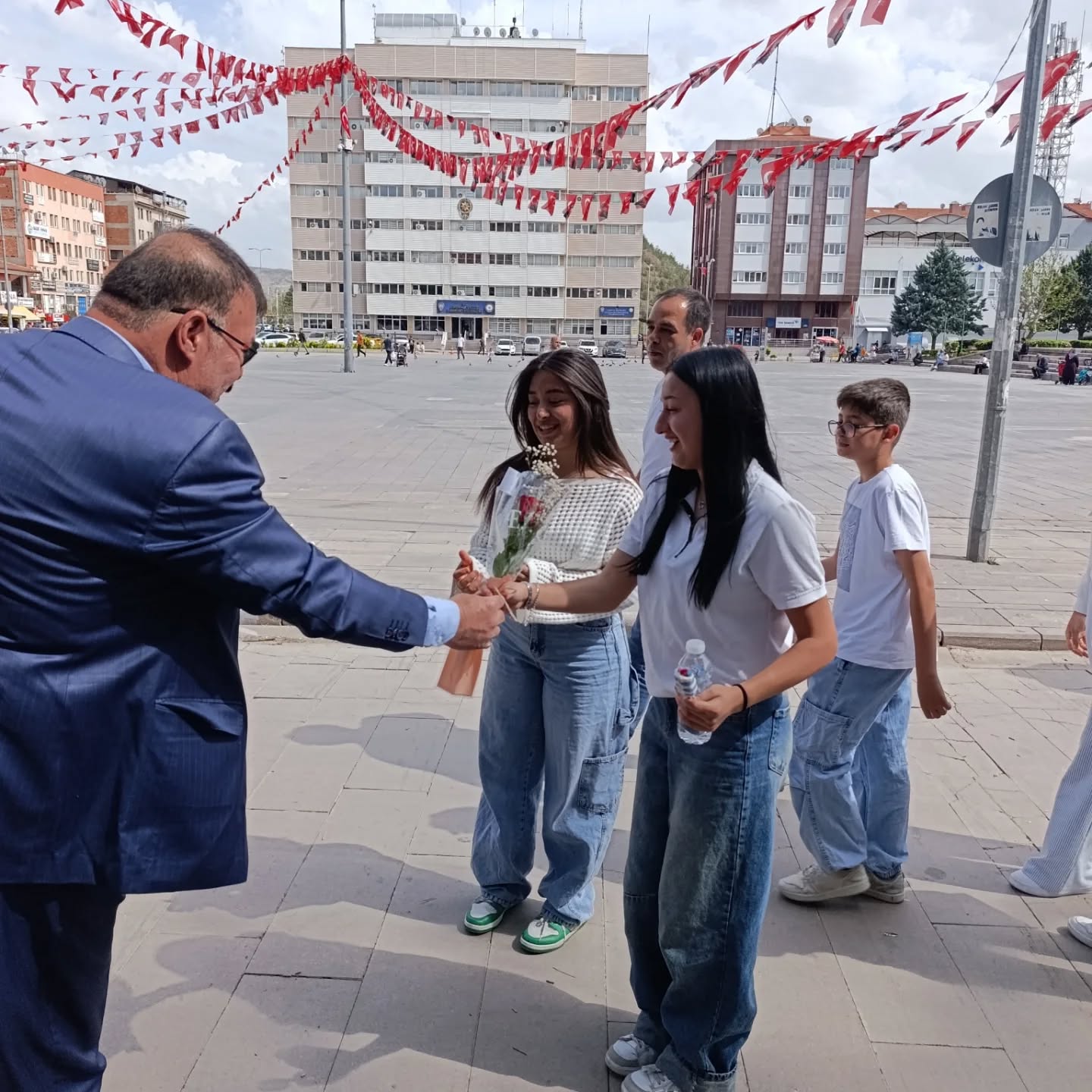 Anahtar Parti Merkez İlçe Başkanı Burhan Düğeroğlu, anneleri unutmayarak, Cumhuriyet Meydanı’nda çiçek takdim etti. Düğeroğlu’nun bu anlamlı jesti, annelerden anlamlı bulundu.