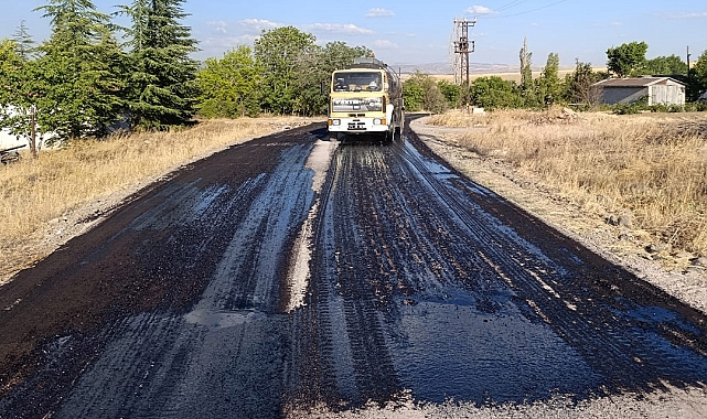 Kırıkkale'nin Keskin ilçesine bağlı Kuzugüdenli Köyü ile Beşler Köyü arasında ulaşımı sağlayan yolda, asfaltlama öncesi yürütülen astar atımı çalışmaları hız kesmeden devam ediyor.