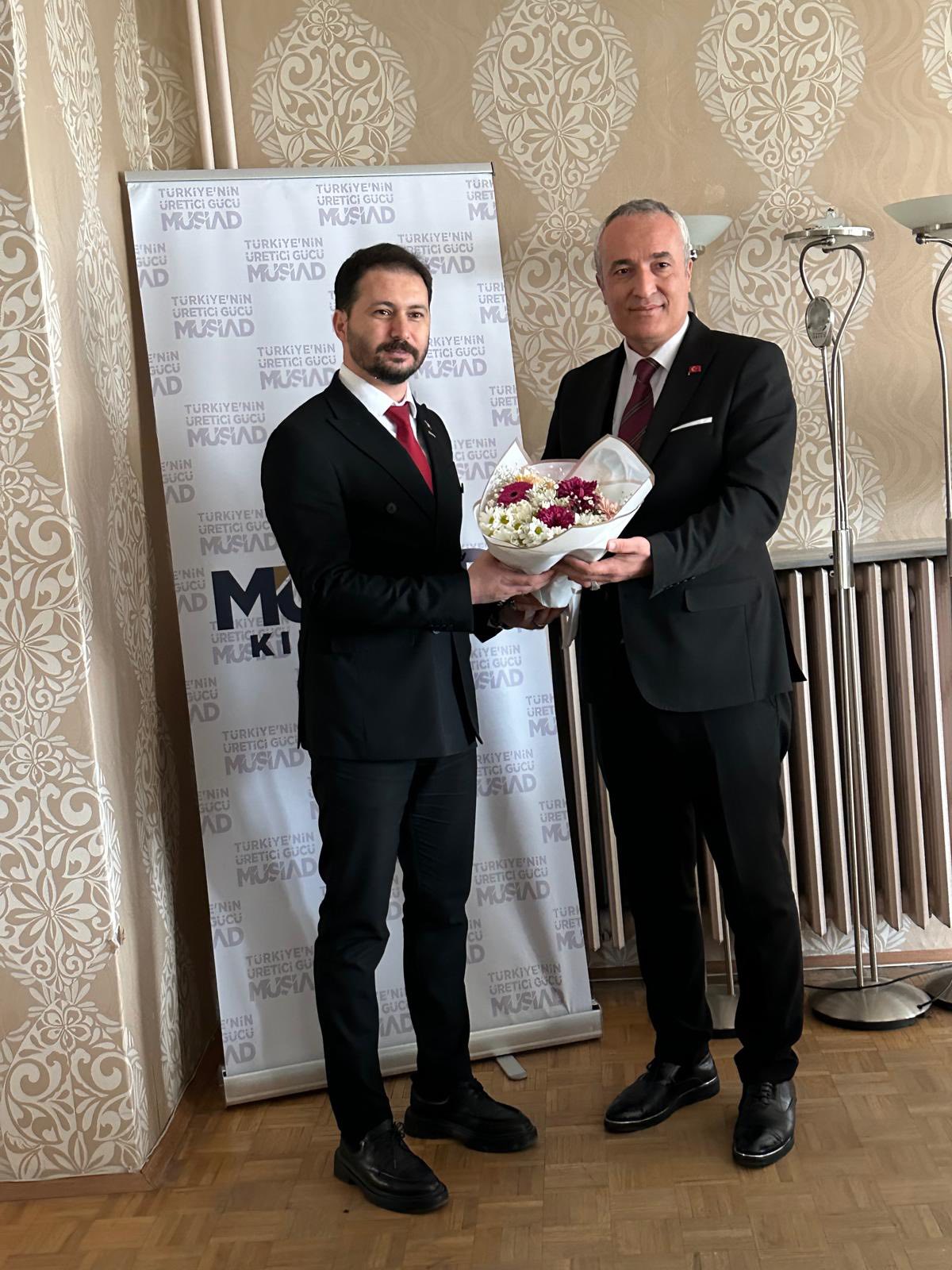 Öte yandan, Vergi Haftası etkinlikleri çerçevesinde Kırıkkale Defterdarlığı İl Defterdarı Serdar Esen ve beraberindeki heyet, MÜSİAD Kırıkkale Şubesi’ni ziyaret etti.