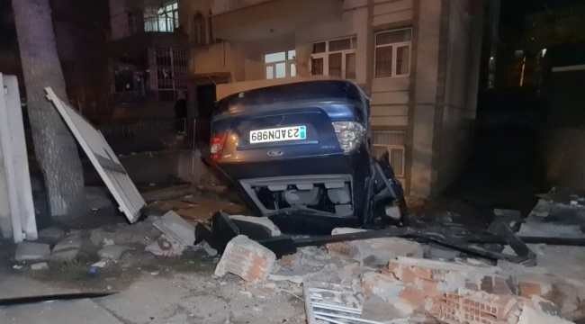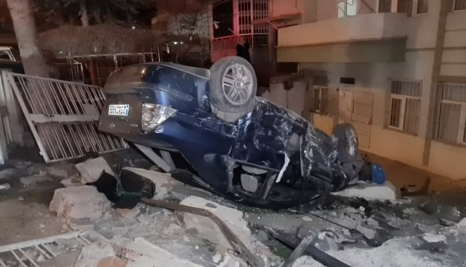 Kontrolden çıkan iki otomobilden biri apartman duvarını yıkıp devrilirken, diğeri park halindeki bir araca çarparak durabildi.