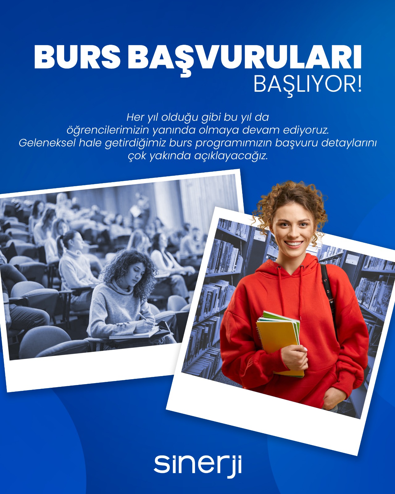 Sinerji, toplumsal sorumluluk anlayışının bir parçası olarak her yıl düzenli hale getirdiği burs programını bu yıl da öğrencilerle buluşturmaya hazırlanıyor. Eğitim hayatına katkı sunmayı amaçlayan programın başvuru detayları önümüzdeki günlerde kamuoyuyla paylaşılacak.